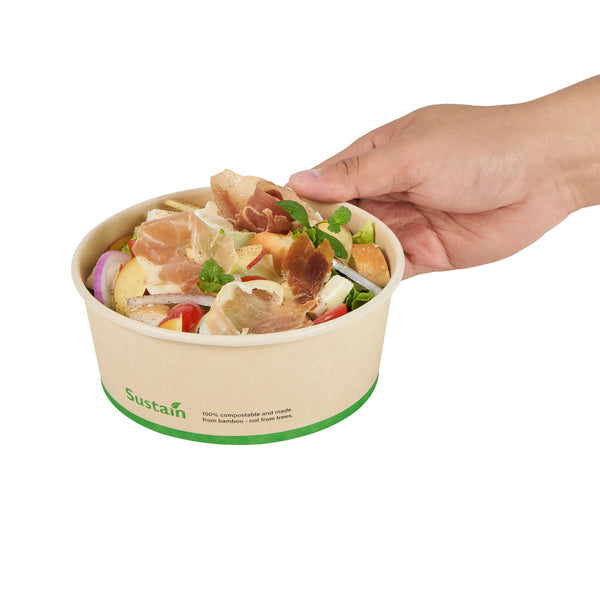 25 OZ BAMBOO PAPER SALAD CONTAINER - WITH PLA LINING, COMPOSTABLE