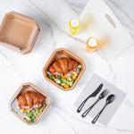 These disposable kraft food containers are highly versatile and suitable for hot and cold foods, offering reliable performance across a wide range of temperatures. Serve stews, noodles, salads, chilled desserts, and more!