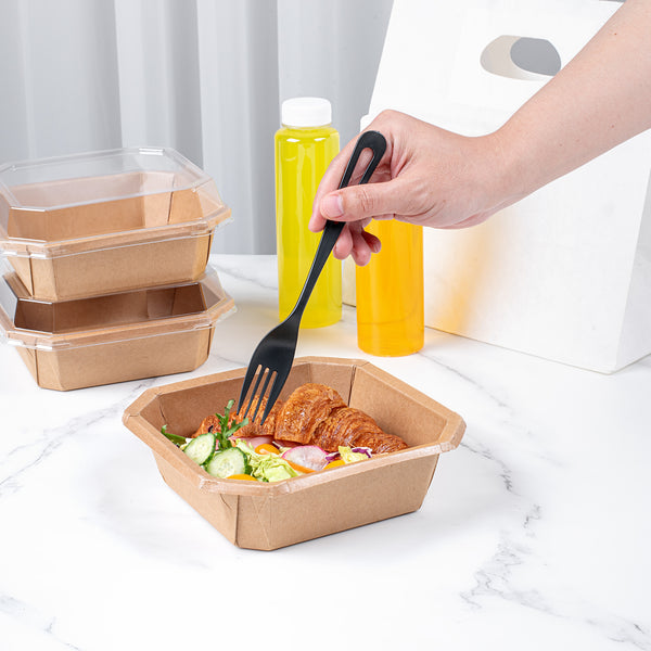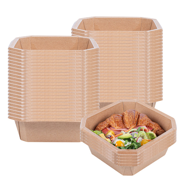 The octagonal shape of these take out containers optimizes space utilization, allowing for efficient packing. Plus, the geometric design elevates the food presentation.