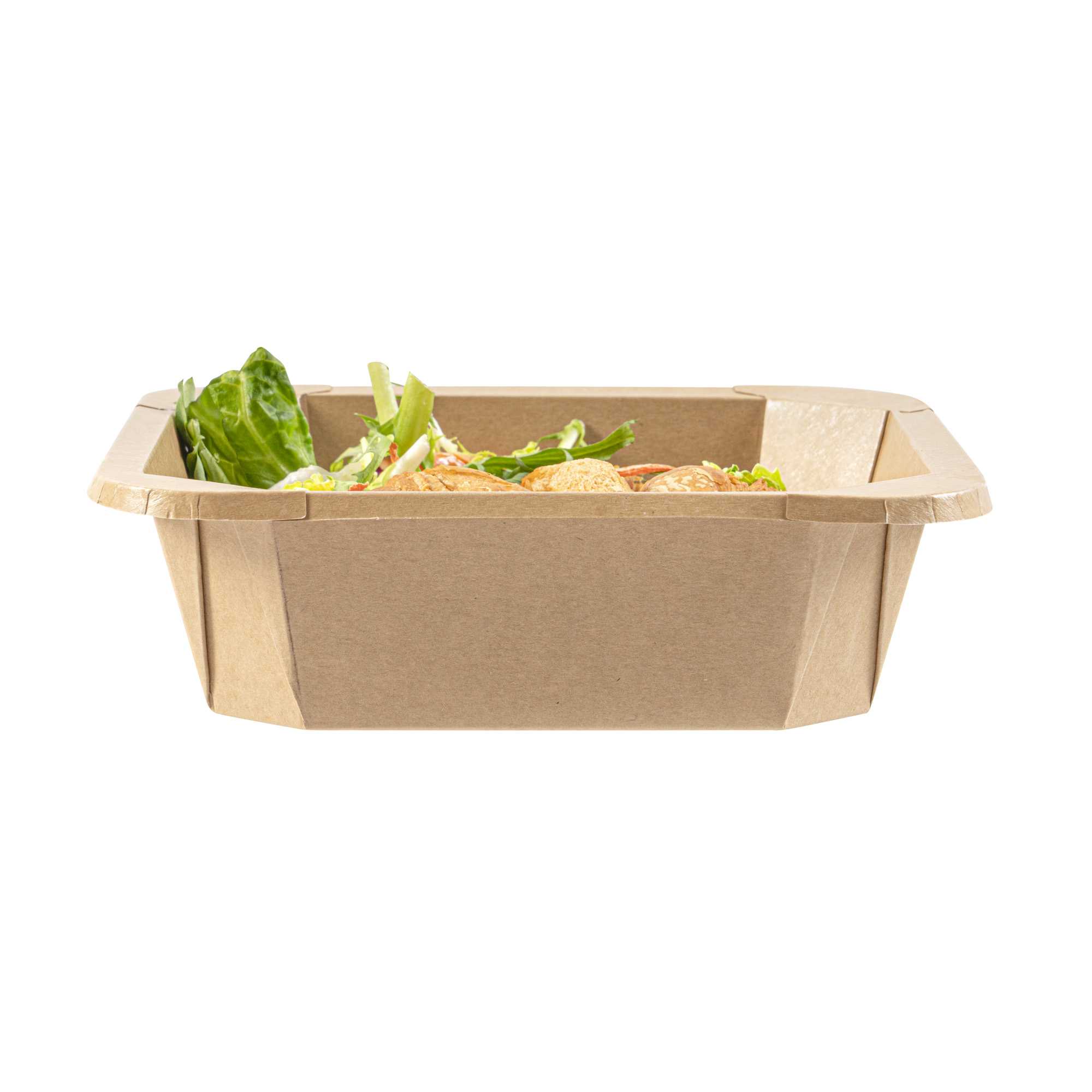 These kraft take out containers are lined with PLA, which acts as a barrier against grease and oils from food items. Maintains its integrity and averts leaks or messes.