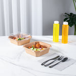 These disposable kraft food containers are highly versatile and suitable for hot and cold foods, offering reliable performance across a wide range of temperatures. Serve stews, noodles, salads, chilled desserts, and more!