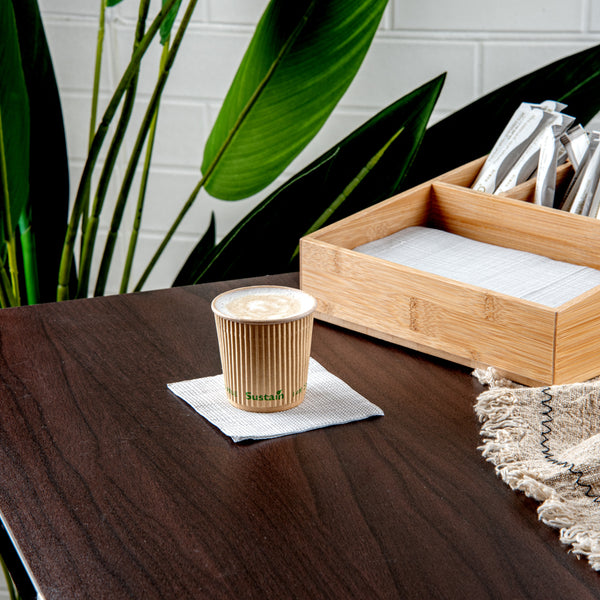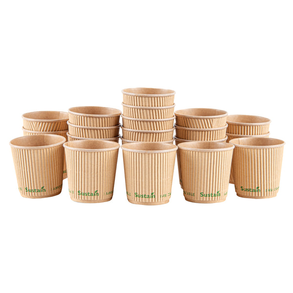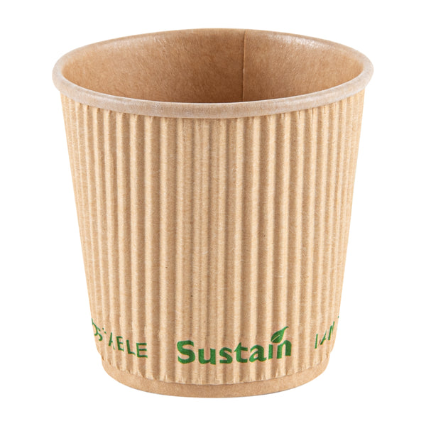 Enhance your beverage service with sustainable and reliable packaging. The Sustain 4 oz Kraft Paper Coffee Cup offers a ripple wall design that ensures comfortable handling and excellent heat retention, making it an exceptional choice for coffee shops and cafes. Made from compostable kraft paper, this cup supports eco-friendly initiatives by simplifying disposal and reducing environmental impact, perfect for those seeking a compostable coffee cup. Its 4-ounce capacity is ideal for espresso shots and sample servings, catering to establishments that need a versatile espresso serving cup. The freezer-safe build maintains the quality of chilled beverages, providing flexibility for diverse menu offerings, while the moistureproof surface prevents leaks, ensuring a hassle-free experience. With dimensions of 2.44 inches in length, width, and 2.36 inches in height, this ripple wall coffee cup is designed for efficient storage and transport. Each order includes 500 cups.