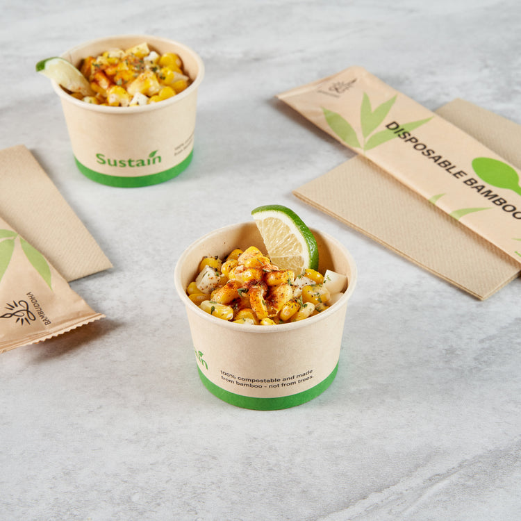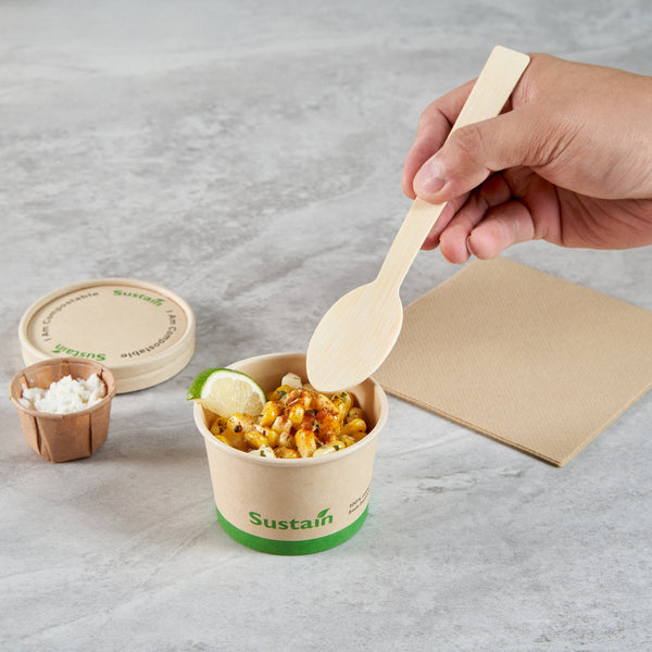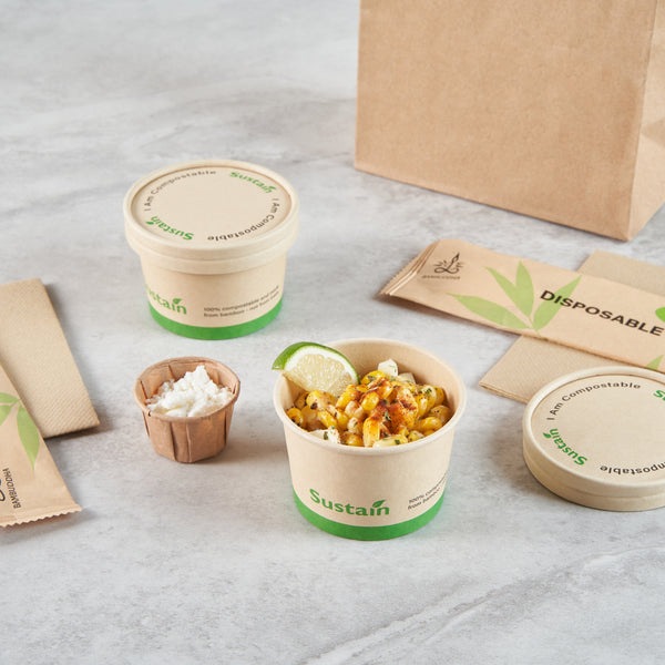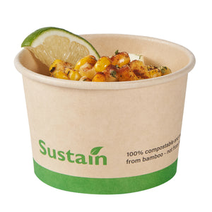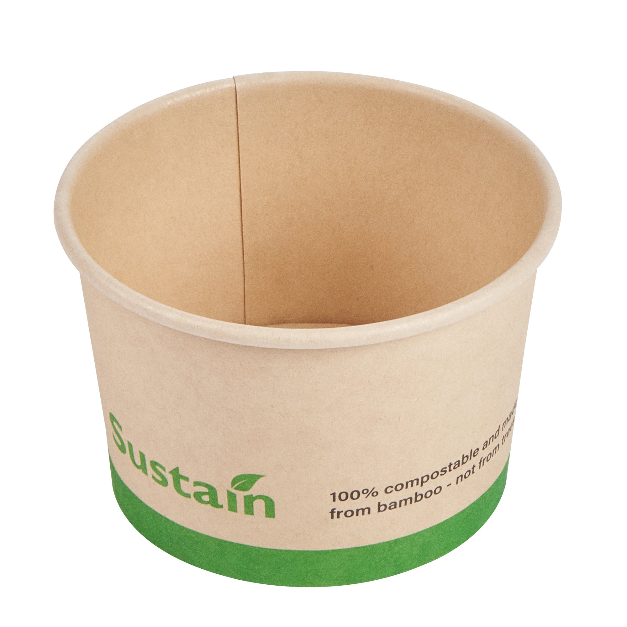 Achieve sustainable beverage service with eco-friendly designs. Sustain Compostable Cups offer a versatile solution with their bamboo paper and PLA lining, making them an ideal choice for establishments focused on environmentally responsible practices. Their 4-ounce capacity is perfect for serving sample-sized snacks, providing cafe owners with excellent portion control that enhances customer satisfaction. The rolled rim ensures a secure fit with coordinating lids, preventing leaks and maintaining beverage integrity, especially when serving hot drinks. Their freezer-safe design preserves the taste and quality of cold beverages, ensuring freshness for every service. Crafted from sustainable paper, these biodegradable espresso cups support eco-friendly disposal, aligning with the growing demand for green initiatives. Make a positive impact on the environment while delivering exceptional service with these disposable bamboo cups. Each order includes 50 Sustain Compostable Cups.