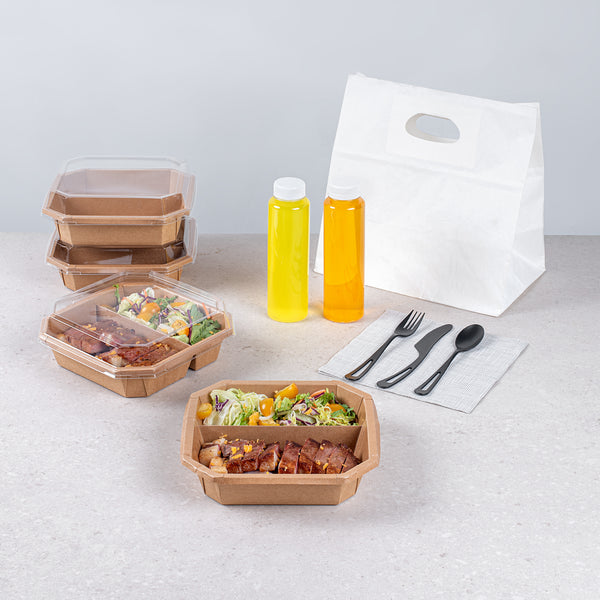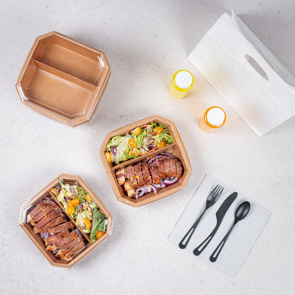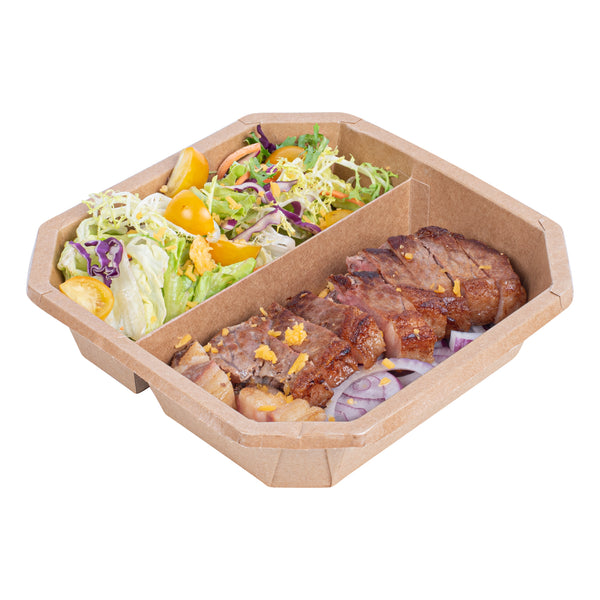41 OZ OCTAGONAL KRAFT PAPER TAKE OUT CONTAINER - 2 COMPARTMENTS