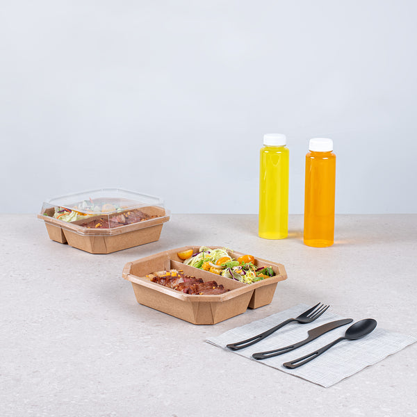 These kraft take out containers are lined with PLA, which acts as a barrier against grease and oils from food items. Maintains its integrity and averts leaks or messes.