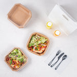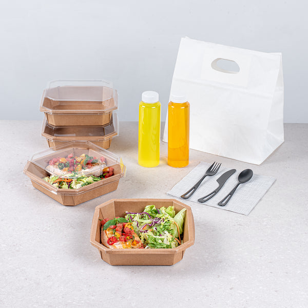 The octagonal shape of these take out containers optimizes space utilization, allowing for efficient packing. Plus, the geometric design elevates the food presentation.