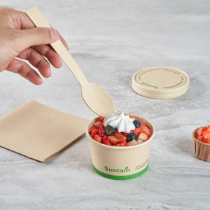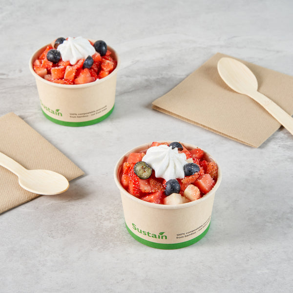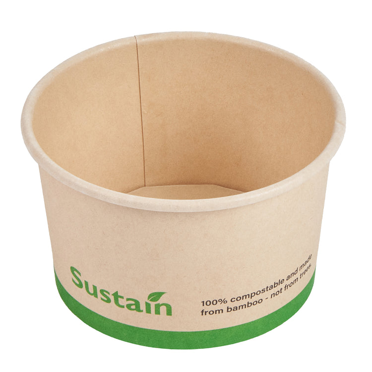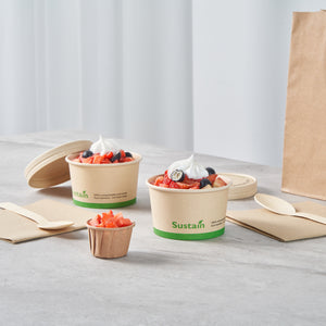 Ensure leak-free beverage service with eco-friendly solutions. Sustain Leak-Resistant Bamboo Paper Cups deliver reliable performance with their PLA lining, preventing leaks for mess-free service. These bamboo paper cups feature a robust bamboo paper construction, offering a sturdy and eco-conscious choice for your cafe or catering needs. With a convenient 5-ounce capacity, they're perfect for serving espresso shots or samples, making them ideal compostable paper cups for any promotional event. The rolled rim securely seals with matching lids, ensuring safe transport and preventing spills, which is essential during takeout or delivery. Made from sustainable paper, these cups are commercially compostable, providing an eco-friendly disposal option that aligns with green business practices. Enhance your foodservice offerings with recyclable paper cups that combine functionality and sustainability. Each order includes 50 Sustain Leak-Resistant Bamboo Paper Cups.
