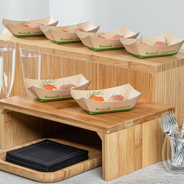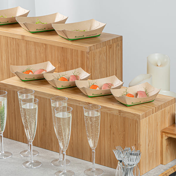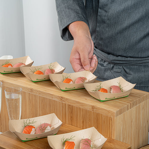 SUSTAIN 6 OZ BAMBOO PAPER #40 FOOD TRAY / BOAT - COMPOSTABLE