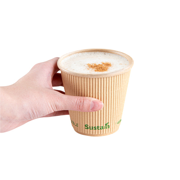 Elevate your beverage service with eco-conscious convenience. The Sustain 8 oz Kraft Paper Coffee Cup, crafted from durable kraft paper and measuring 3.5 inches in height, features a ripple wall design that keeps drinks insulated and warm, ensuring customer comfort without external sleeves. This compostable coffee cup is lined with PLA, offering an eco-friendly alternative to traditional plastic linings, supporting sustainable business practices. Its biodegradable build reinforces your commitment to environmental stewardship while maintaining its shape and integrity, preventing spills and leaks during use. Ideal for coffee shops and cafés, this ripple wall coffee cup fits standard 8-ounce lids, facilitating secure, on-the-go consumption. Additionally, these disposable coffee cups are freezer-safe, making them suitable for storing cold beverages, enhancing their versatility in catering and foodservice operations. Each order includes 25 cups.
