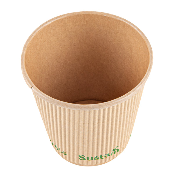 8 OZ KRAFT PAPER COFFEE CUP - PLA LINING, COMPOSTABLE, RIPPLE WALL