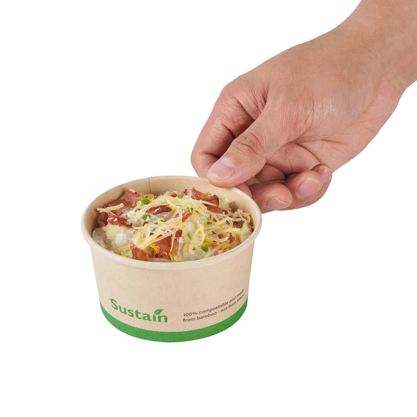 Serve sustainably without leaks or spills. Sustain Leak-Resistant Compostable Cups are designed with a PLA lining that prevents leaks, ensuring a mess-free serving. These compostable cups feature a rolled rim that securely seals with coordinating lids, providing reliable transport for takeaway orders. Crafted from sustainable paper, these cups support eco-friendly disposal practices, making them an excellent choice for environmentally conscious cafes. With a capacity of 8 ounces, these kraft paper cups offer the perfect size for serving small to medium drinks. Measuring 3.7 inches in both length and width, and standing 2.2 inches tall, they fit seamlessly into any beverage service operation. Enhance your coffee service with these disposable cups that align with your sustainability goals. Each order includes 50 Sustain Leak-Resistant Compostable Cups.