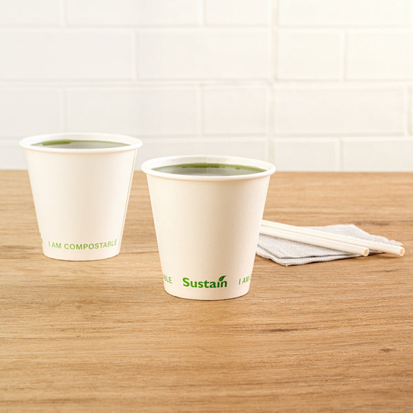 Enhance your eco-friendly beverage service with our sustainable solution. The Sustain Leakproof Compostable 9 Ounce Cold Cup combines premium paper and a moisture-resistant PLA bioplastic lining to prevent leaks, ensuring reliable performance in busy foodservice settings. As a compostable cold cup, it supports eco-friendly disposal practices, aligning with your sustainability initiatives while offering a capacity of 9 ounces to accommodate a variety of beverages. Its freezer-safe construction makes it ideal for ice storage and transport, while the tightly rolled rim guarantees a comfortable, leakproof drinking experience, making it a perfect biodegradable cold drink cup for quick-service restaurants and cafés. The slightly tapered shape provides a comfortable grip, is cold food friendly, and allows for easy stacking and storage. Choose these PLA lined cups to boost operational efficiency and reduce environmental impact. Each order includes 1000 Sustain Leakproof 9 oz Compostable Cold Cups.