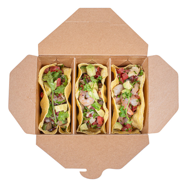 KRAFT PAPER TACO TAKE OUT CONTAINER - PLA LINING, COMPOSTABLE