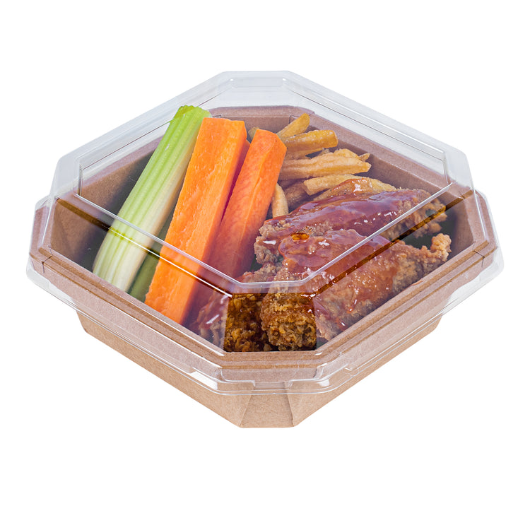 OCTAGONAL CLEAR PLA PLASTIC DOME LID - FITS 22 OZ CONTAINER