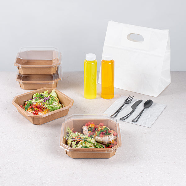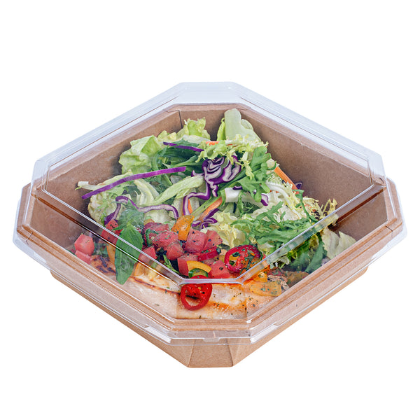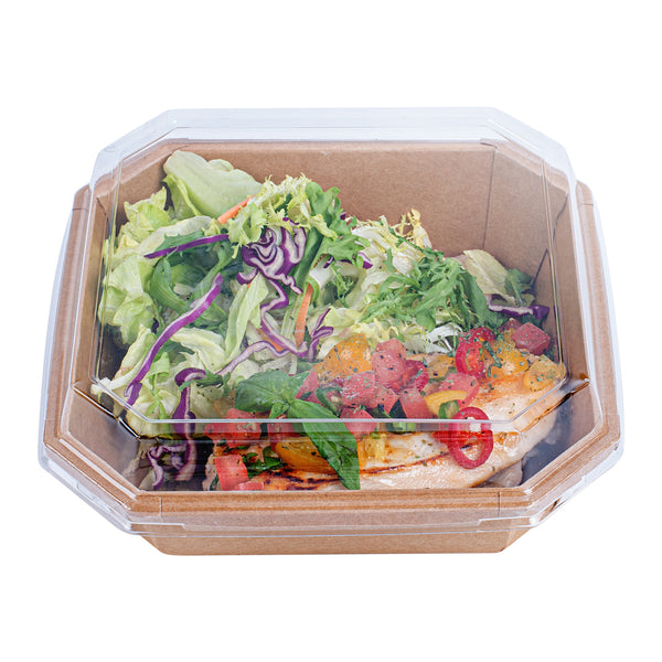 OCTAGONAL CLEAR PLA PLASTIC DOME LID - FITS 41 OZ CONTAINER