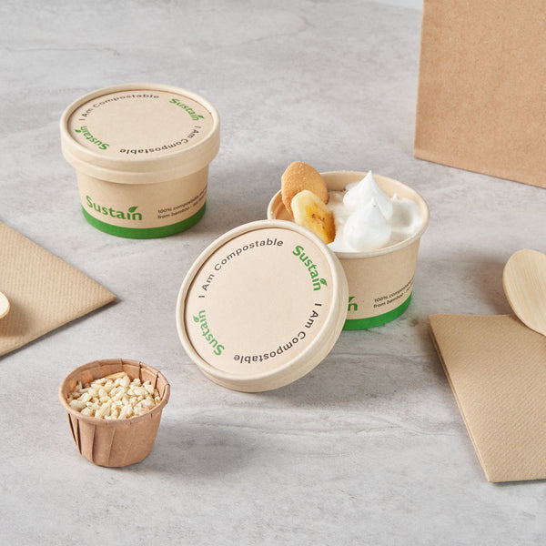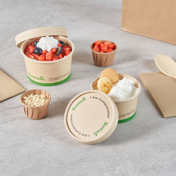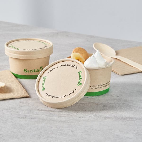 Ensure clean and efficient service with leak-resistant lids. Sustain Compostable Cup Lids feature a PLA lining that prevents leaks, offering a mess-free solution for serving both hot and cold beverages. These compostable cup lids are crafted from sustainable paper, making them an ideal choice for eco-conscious establishments seeking biodegradable lids that support environmentally friendly disposal. With a sturdy design, these disposable cup lids secure beverages safely without becoming soggy, ensuring a reliable performance for foodservice professionals. Measuring 3 inches in length and width, it provides a snug fit that prevents spills. Add an eco-friendly touch to your beverage service while maintaining functionality and dependability. Each order includes 200 Sustain Compostable Cup Lids.