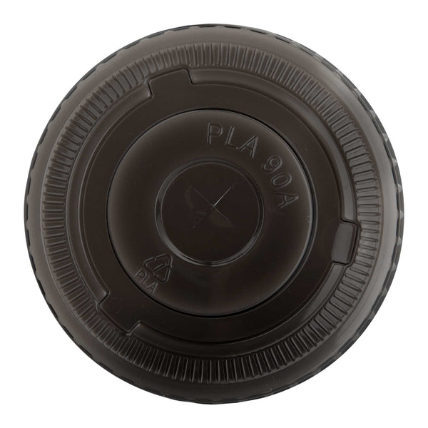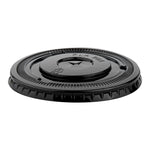 ROUND BLACK PLA PLASTIC FLAT LID - FITS 12, 16, AND 24 OZ