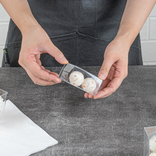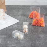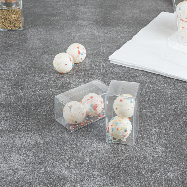 Our candy boxes are crystal clear so your guests can easily see their sweets or party favors in each box. Show off your colorful candies or delicious baked goods!