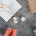 Protective film allows you to fill boxes without having to worry about leaving fingerprints or scratches behind. Simply peel off the film after packaging to reveal a spotless dessert display.