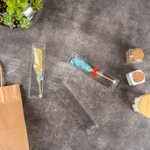 Our candy boxes are crystal clear so your guests can easily see their sweets or party favors in each box. Show off your colorful candies or delicious baked goods!