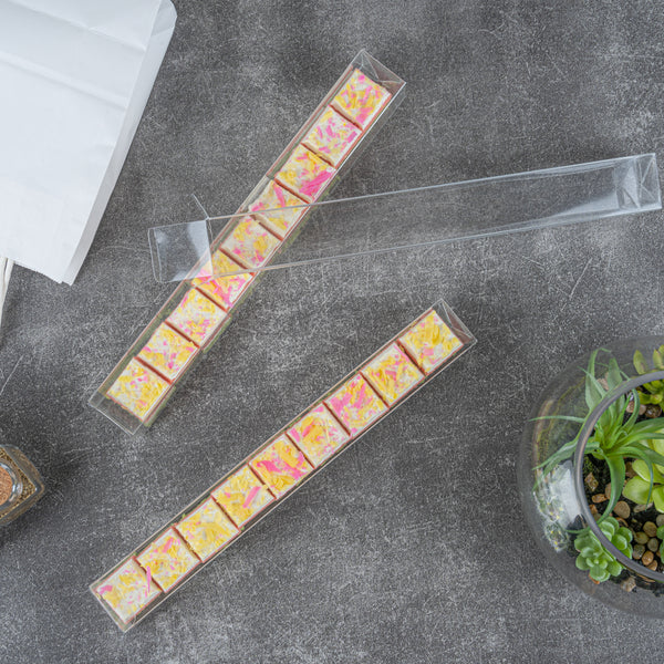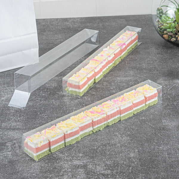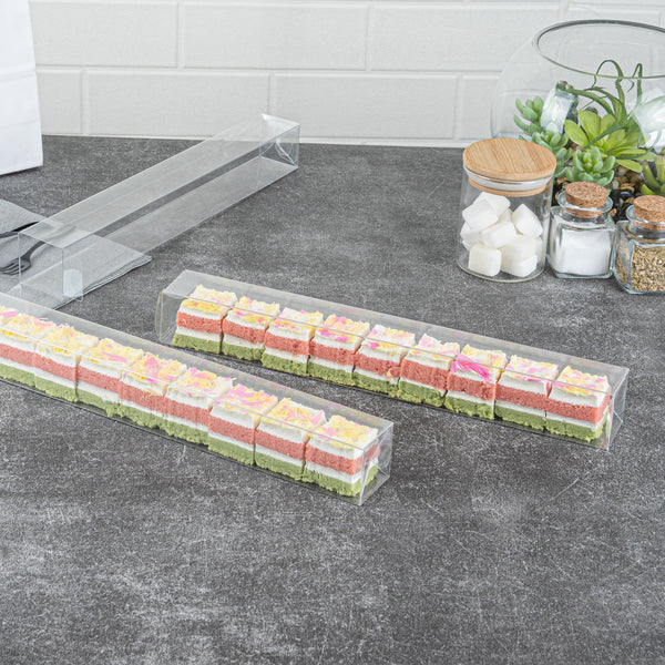 Our candy boxes are crystal clear so your guests can easily see their sweets or party favors in each box. Show off your colorful candies or delicious baked goods!