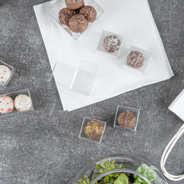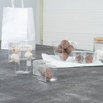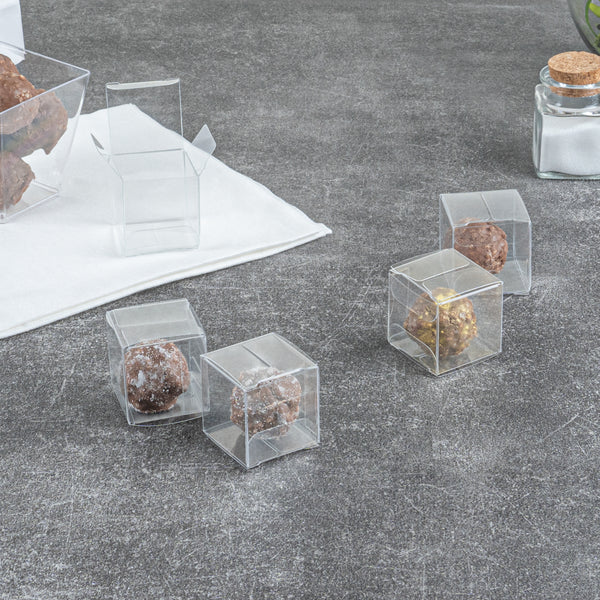 Our candy boxes are crystal clear so your guests can easily see their sweets or party favors in each box. Show off your colorful candies or delicious baked goods!