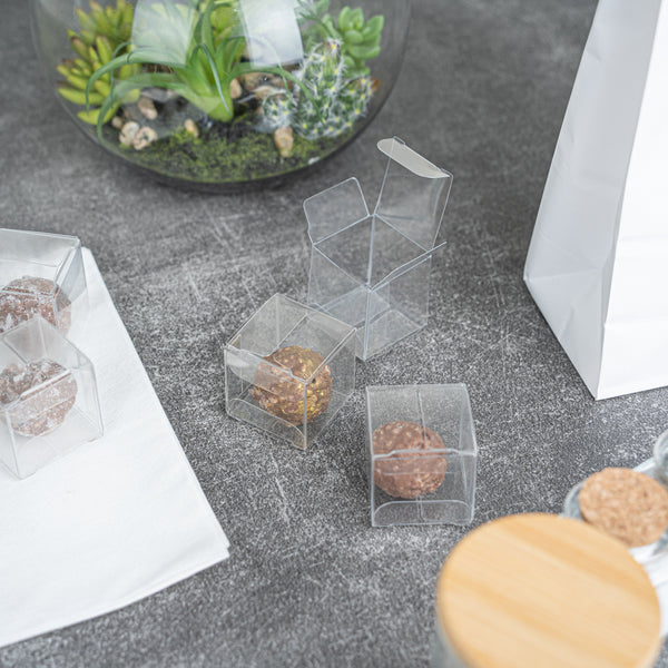 All of our clear boxes are sold in large quantities so you'll always have enough boxes for giving away gifts at multiple parties. Each box arrives flat and can be easily assembled.