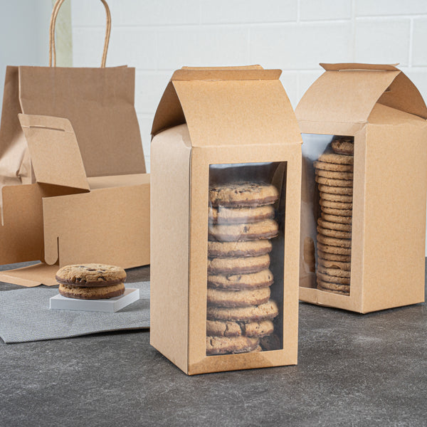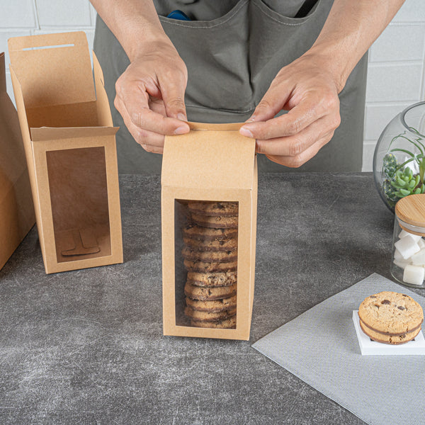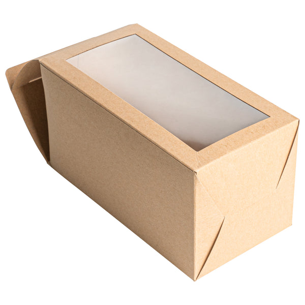 Conveniently package your sweet or savory treats with our Sweet Vision Kraft Paper Tote Boxes. With a tapered lock system, these paper takeaway boxes securely lock in the contents. Made from premium kraft paper, these sweet tote boxes are durable and sturdy to carry your treats efficiently. Featuring a clear plastic window, these takeaway food containers give guests a sneak peek into your delectable bite-sized delicacies. Constructed from nature-friendly kraft paper, these durable to-go boxes are recyclable and commercially compostable. After large catered events, these biodegradable kraft paper boxes are conveniently disposable. Measuring 3.5 inches long by 3.5 inches wide by 8.5 inches tall, these to go containers are ideal for cafes, bakeries, and restaurants. Shipped in a 100 count box. This item will only degrade outside of the traditional solid waste stream.
