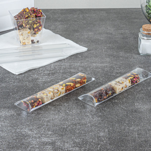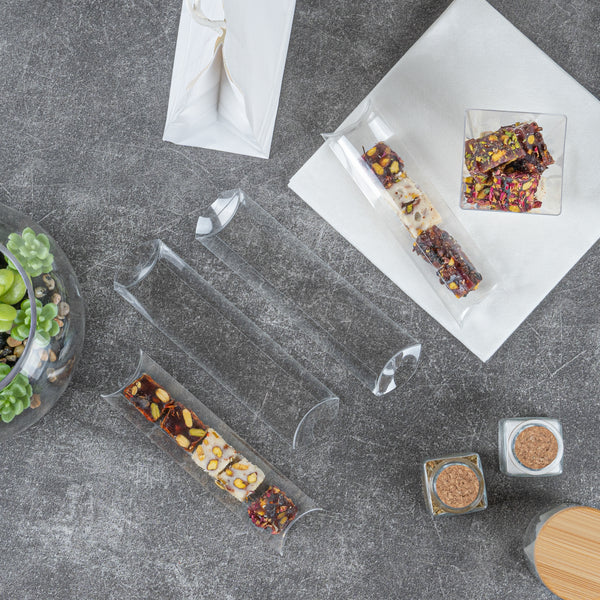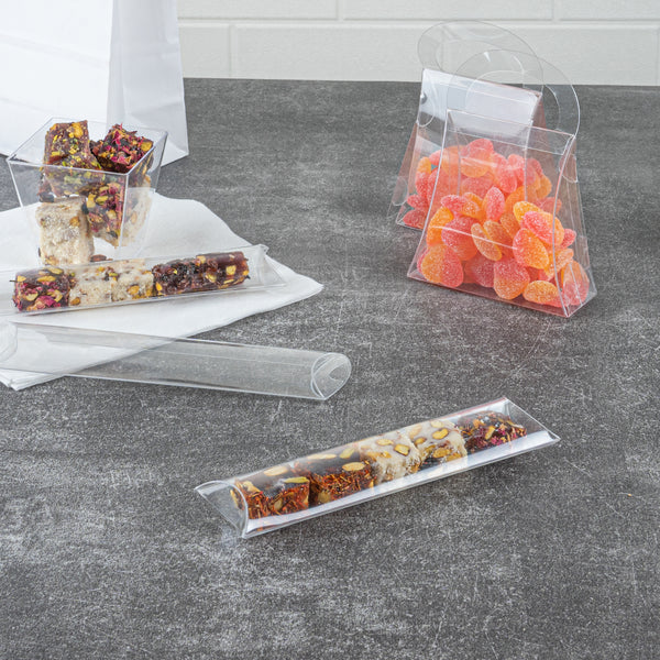 Our candy boxes are crystal clear so your guests can easily see their sweets or party favors in each box. Show off your colorful candies or delicious baked goods!