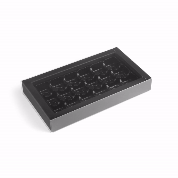 RECTANGLE BLACK PAPER CANDY / CHOCOLATE BOXES - 18 COMPARTMENTS