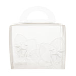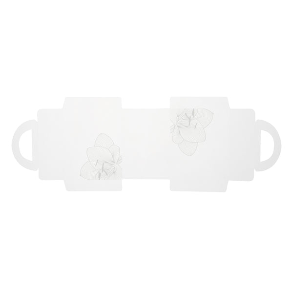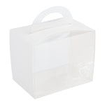 Elegantly package cupcakes with our Sweet Vision Rectangle Clear Plastic Cupcake Boxes. These plastic cupcake containers have a clear finish with printed lotus designs to effortlessly showcase your delicious baked goods. With a built-in handle, these cupcake to go boxes allows your staff to comfortably and easily deliver sweet treats. These cupcake packaging boxes include white paper wraps that you simply wrap around the side of boxes to prevent cupcakes from falling out. These 2-piece cupcake boxes are conveniently disposable allowing your staff to quickly cleanup after any event. With a grease-resistant and non-stick design, these chic cupcake containers prevent cupcakes from sticking to the base which makes it easy to serve customers your tasty desserts. Measuring 5 inches in length by 3 inches in width, these disposable cupcake boxes are shipped unassembled and flat for space-saving storage at your cupcake shop, bakery, diner, or other foodservice establishment. Available in a 100 count box.