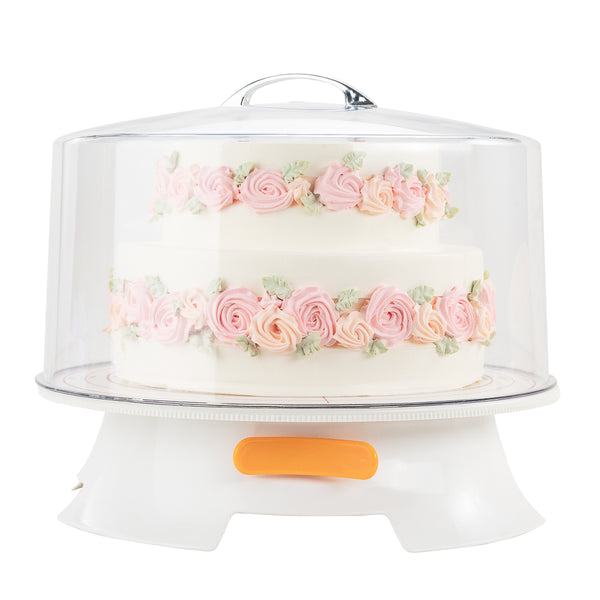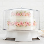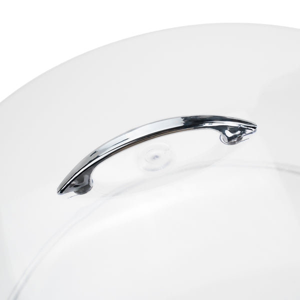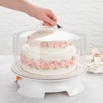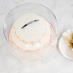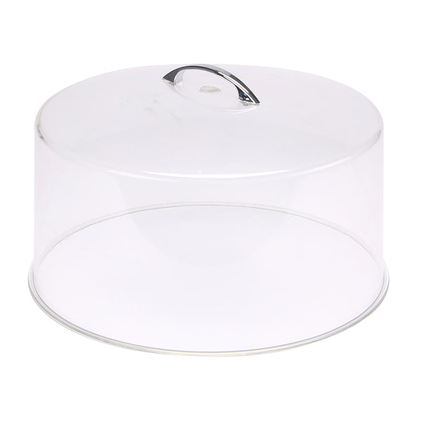 Showcase your freshly baked cake using our Sweet Vision Round Clear Cake Cover. Featuring a clear finish, this round cake cover seamlessly displays the colors of your beautifully decorated cake to make it the center of attention at your cake shop, bakery, or catered event. This clear cake cover features a chrome handle that offers a convenient way to lift the cover off of cakes while bringing a touch of elegance to your cake presentation. Made from durable plastic, this cake dome is designed to keep your cake safe during transport and protect it from contaminants. This plastic cake dome is safe for commercial dishwasher use to quickly remove crumbs and speed up your cleaning time after use. Measuring 12 inches in diameter by 6.5 inches in height, this heavy-duty cake lid is excellent for covering tall cakes, pastries, pies, and other baked goods. Shipped in a 1 count box.
