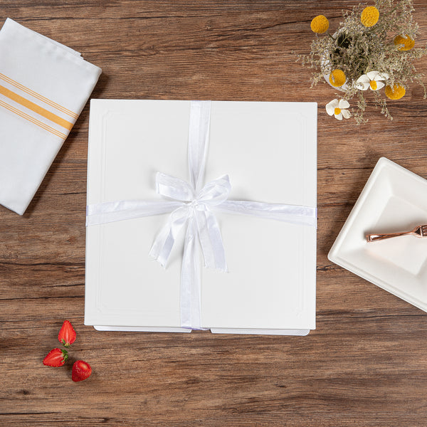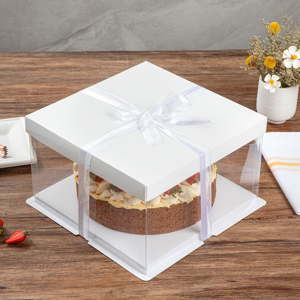 Every order includes 10 bases, 10 lids, 10 plastic containers, and ribbon, providing you with all the essentials to easily build your cake boxes. Conveniently package all types of baked goods for special occasions.