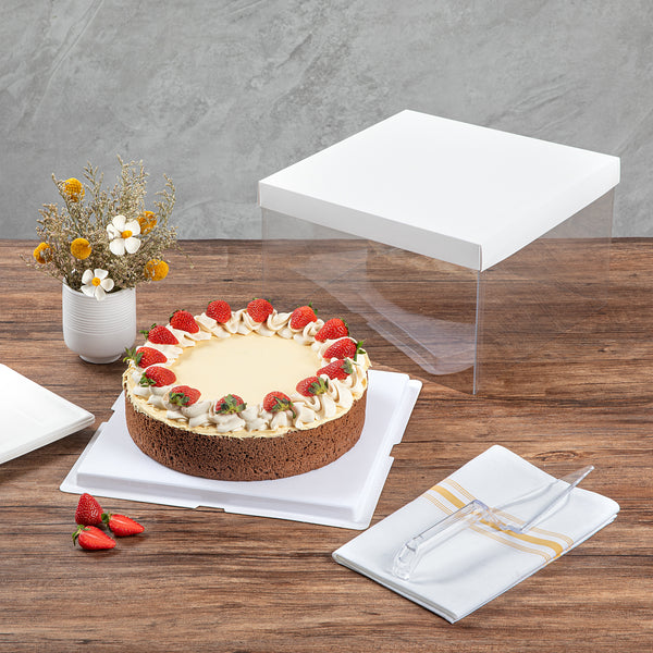 Choose from boxes with included paper lids or clear covers to protect your bundt cakes or pies and preserve their toppings during transport. Make sure your cakes stay intact!