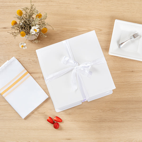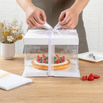 Every order includes 10 bases, 10 lids, 10 plastic containers, and ribbon, providing you with all the essentials to easily build your cake boxes. Conveniently package all types of baked goods for special occasions.