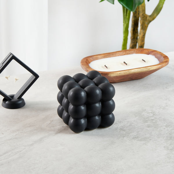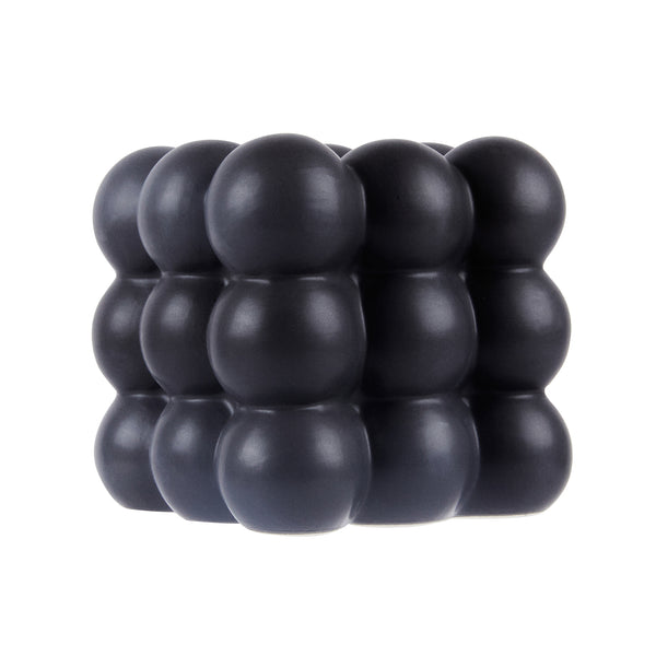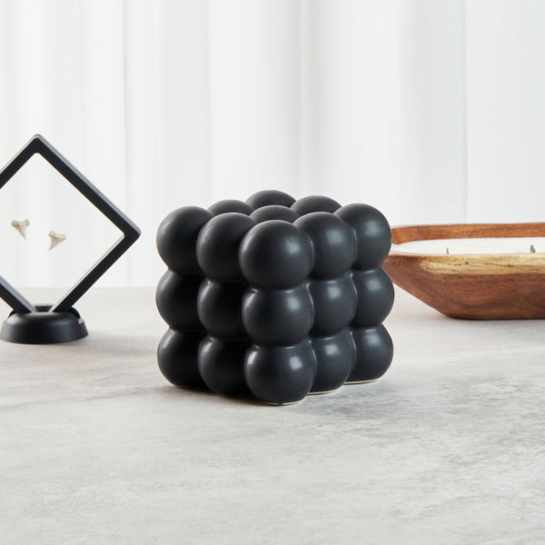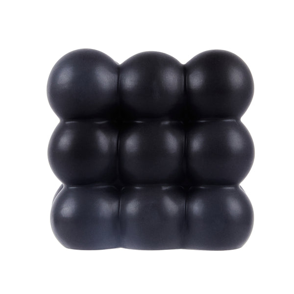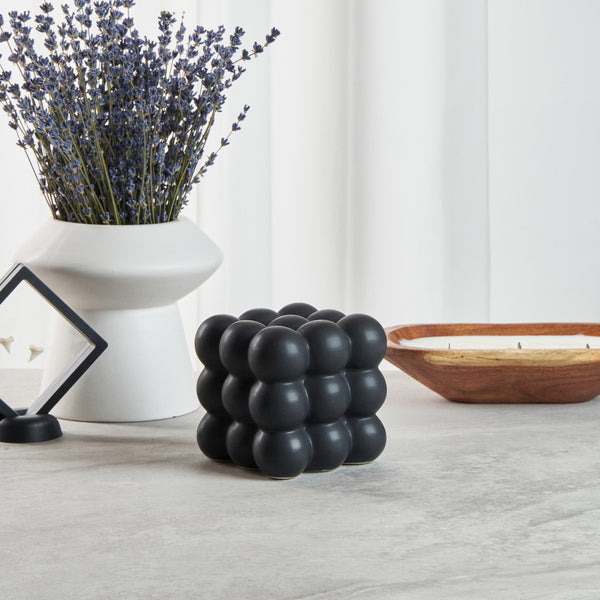 Elevate your decor with our Table Art Black Ceramic Bubble Cube Vase. This ceramic vase features a captivating design with its geometric shape adorned with delicate bubbles, adding a touch of whimsy and modern flair to any floral arrangement. The black finish of this flower vase exudes a sense of contemporary sophistication, adding a touch of elegance and drama to any floral arrangement. Crafted from premium ceramic, this decorative vase boasts durability and sturdiness, ideal for long-lasting use. The sturdy base of this centerpiece vase minimizes the risk of tipping over and ensures your floral arrangements are securely displayed. This table vase harmonizes beautifully with diverse settings such as offices and living rooms, effortlessly elevating the ambiance with its stylish presence. The versatile design of this black ceramic vase makes it ideal for floral or dried arrangements, as well as a striking standalone centerpiece. For easy maintenance, this black vase can be hand washed with soap and water, making upkeep simple and convenient. Measuring 4.4 inches in length by 4.4 inches in width by 4.1 inches in height, this bubble vase fits perfectly in various settings. Sold in a 1 count box.