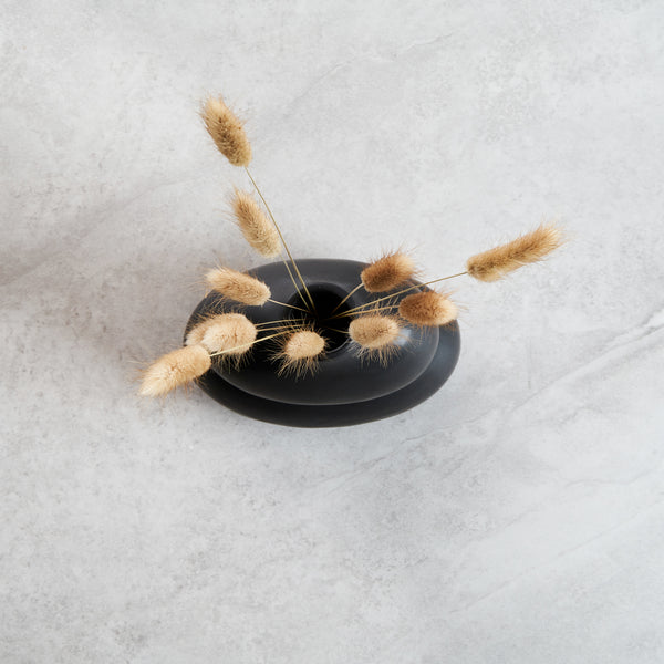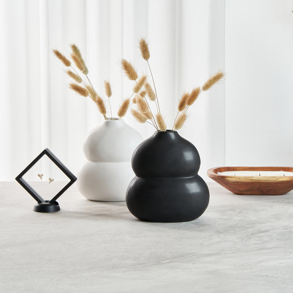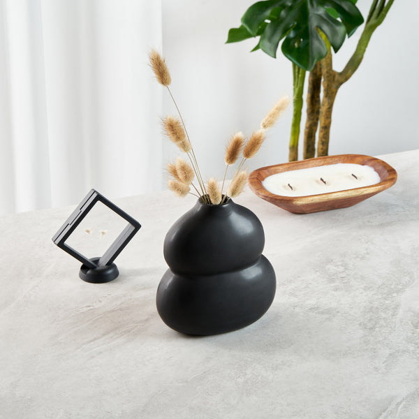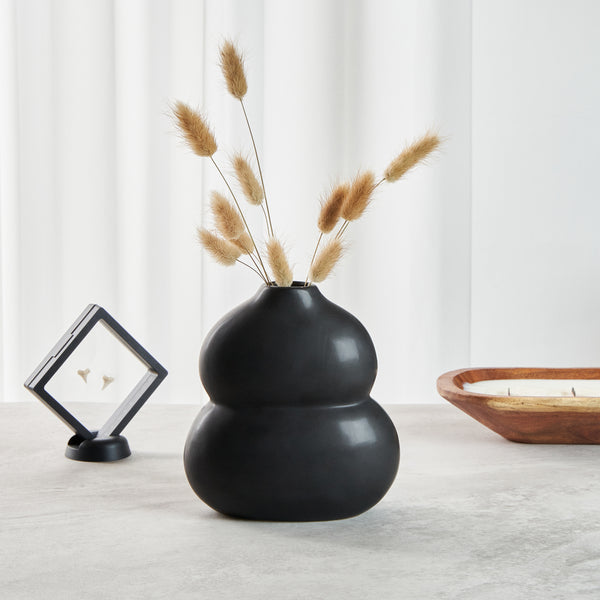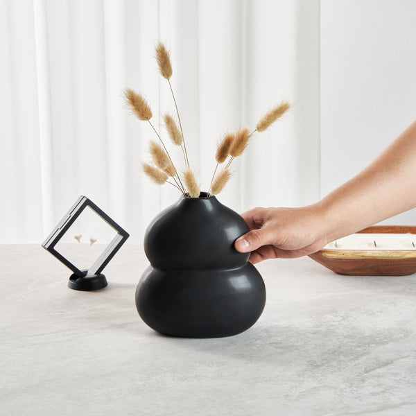 Showcase your favorite blooms with our Table Art Black Ceramic Gourd Vase. This ceramic vase features a gourd-inspired design, combining graceful curves to create a stylish and unique accent for any decor. With a black finish, this flower vase exudes a contemporary allure, adding a sophisticated touch to any space it inhabits. Crafted from premium ceramic, this decorative vase is durable and sturdy, making it ideal for long-lasting use. With a stable base, this centerpiece vase minimizes the risk of tipping over to keep your floral arrangements intact. This table vase suits various settings, complementing traditional and contemporary decor styles. The versatile design of this black vase allows you to use it as a standalone centerpiece or vessel for displaying your floral arrangements. This black ceramic vase can be hand washed with soap and water to maintain its pristine appearance. Measuring 6.5 inches in length by 4 inches in width by 6.9 inches in height, this black decorative vase fits perfectly in various spaces. Sold in a 1 count box.
