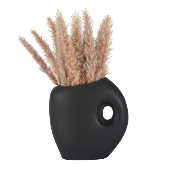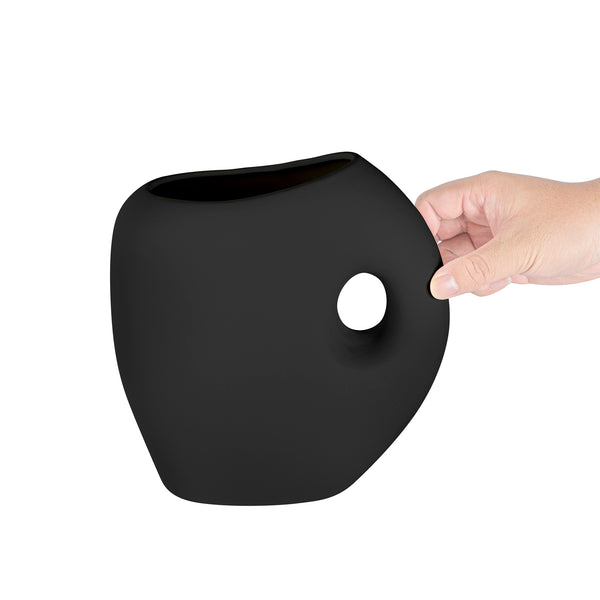 Introduce elegance to any space with our Table Art Black Ceramic Jug Vase. Designed in the classic jug style, this ceramic vase provides a charming option for showcasing floral arrangements. The carefully crafted opening of this decorative vase makes arranging various flowers effortless. Featuring a convenient built-in handle, the jug vase ensures easy handling and transport. The sleek black finish of this flower vase enhances its sophisticated appeal, adding refinement to any floral display or decor setting. Made from premium ceramic, this centerpiece vase ensures durability and sturdiness, providing years of timeless beauty. With its stable base, this black ceramic vase minimizes the risk of tipping over. Suitable for various environments, this table vase complements modern living rooms with stylish office spaces. This black vase is versatile and can be used as a standalone centerpiece or for displaying floral arrangements. To provide easy upkeep, this black decorative vase can be hand washed to maintain its pristine appearance. Measuring 9 inches in length by 4.5 inches in width by 9.5 inches in height, this black flower vase fits perfectly in various settings. Sold in a 1 count box.