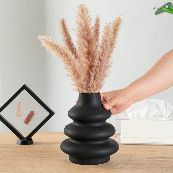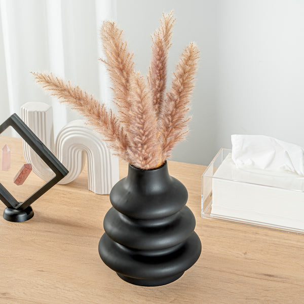 BLACK CERAMIC STACKED VASE