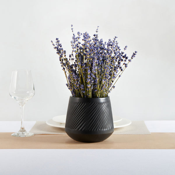 Elevate your office space with our Table Art Black Ceramic Tea Cup Vase. This ceramic vase has a unique tea cup-inspired design and adds a touch of whimsy charm to any space. The black finish of this flower vase offers a sleek and understated look that complements any decor style with effortless simplicity. Made from premium ceramic, this decorative vase is durable and sturdy, ideal for long-lasting use. The stable base of this centerpiece vase reduces the risk of tipping over, ensuring your arrangements stay intact. This black vase complements any room with its minimalist elegance, effortlessly enhancing the aesthetic appeal of office spaces or living rooms. The versatile design of this table vase makes it ideal for showcasing your favorite blooms or as a charming decorative accent for your space. To maintain its pristine condition, this black ceramic vase can be hand washed with soap and water for easy maintenance. Measuring 5.9 inches in diameter by 5.6 inches in height, this black decorative vase fits perfectly in various settings. Sold in a 1 count box.