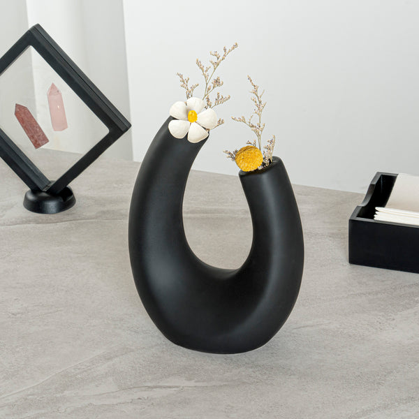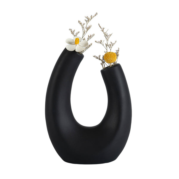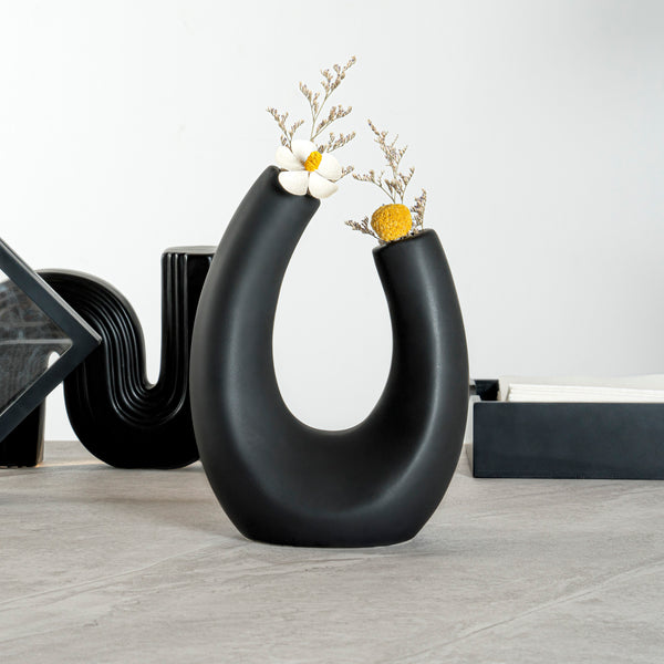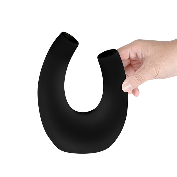 BLACK CERAMIC U-SHAPED VASE