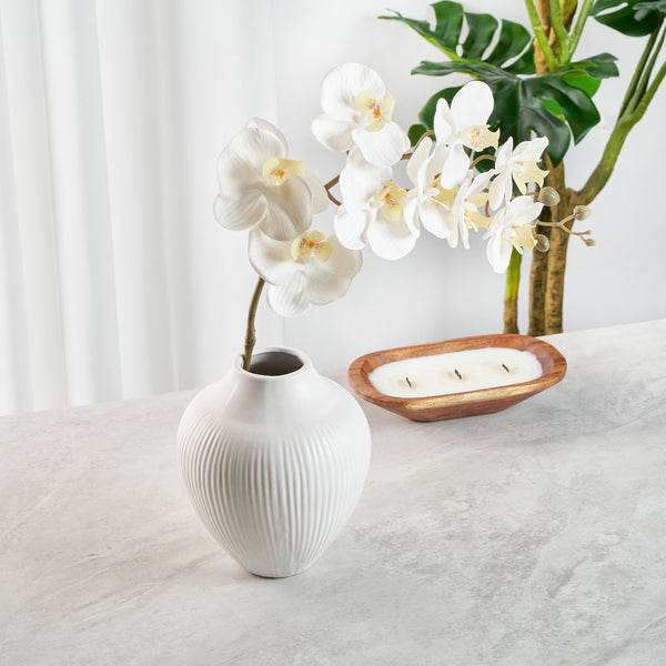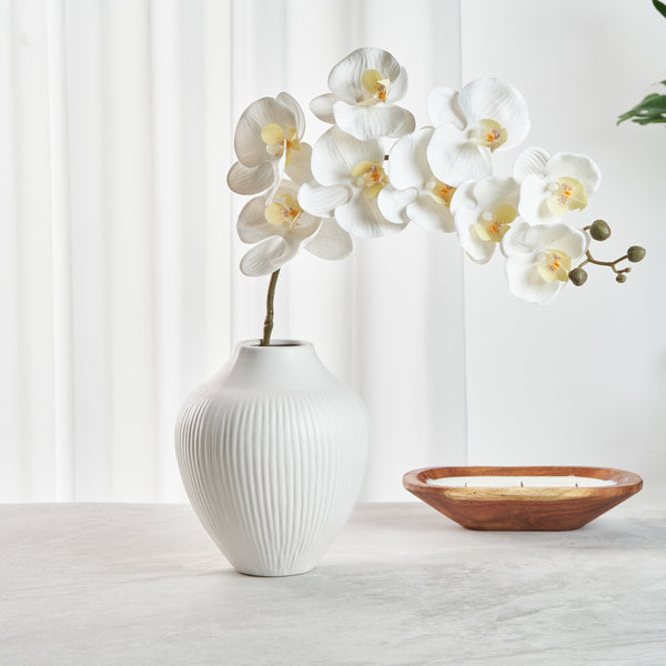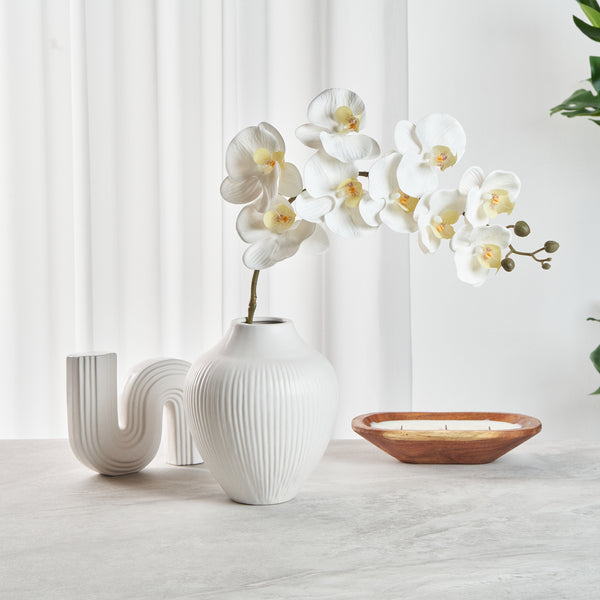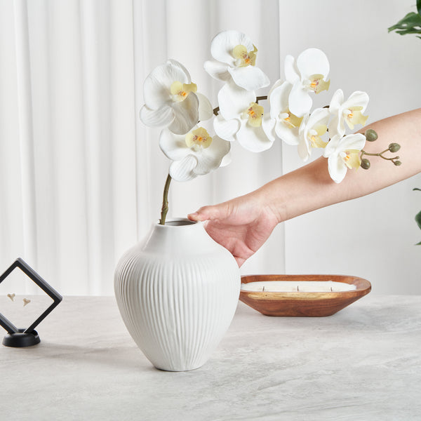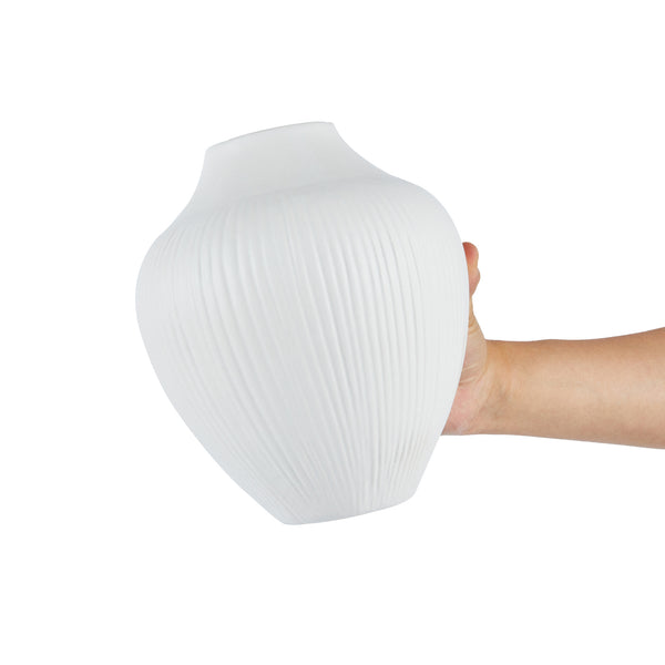Elevate your space with our Table Art White Ceramic Balloon Vase. Featuring a balloon-inspired design, this ceramic vase combines playful elegance and modern flair, making it a charming statement piece for any contemporary interior. The classic white finish of this flower vase exudes elegance and simplicity, making it a versatile addition to any decor. Manufactured from premium ceramic, this decorative vase is durable and sturdy for long-lasting use. The stable base of this centerpiece vase reduces the risk of tipping over, keeping your floral arrangements intact. This table vase is suitable for various settings and can be used for traditional and modern decor styles. The versatile design of this white vase can be displayed as a solo centerpiece or adorned with a vibrant bouquet. This white ceramic vase is hand washable with soap and water to maintain its pristine appearance. Measuring 6.9 inches in diameter by 8 inches in height, this balloon vase fits into various spaces. Sold in a 1 count box.