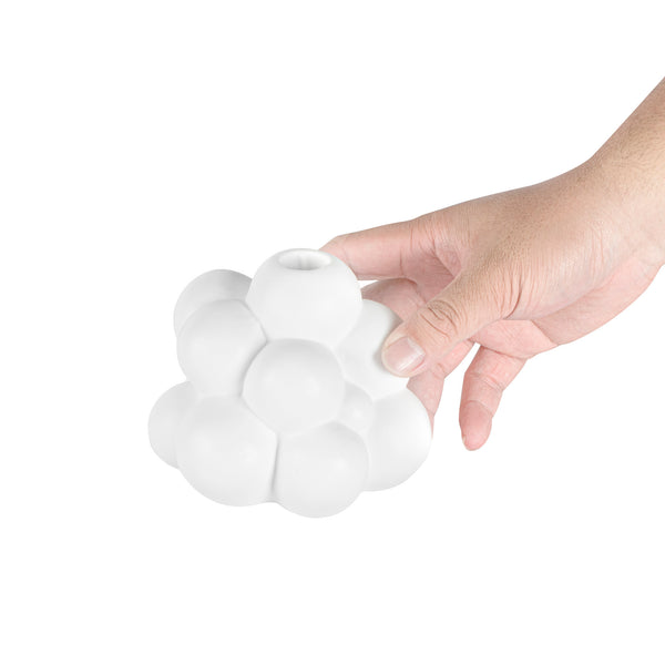 Enhance your living room’s decor with our Table Art White Ceramic Bubble Vase. This ceramic vase features a bubble-inspired design, showcasing stylish contours that add a playful yet elegant touch to any decor. The white finish of this candle holder highlights its minimalist elegance, creating a sophisticated presence in any setting. This decorative vase is crafted from premium ceramic, providing long-lasting durability and sturdiness for years to come. Featuring a sturdy base, this centerpiece vase prevents the risk of tipping over. This table vase complements traditional and contemporary decor styles, ideal for enhancing the ambiance of your home or office. The versatile design of this bubble vase serves as a stylish centerpiece, adding charm to any space. This white vase can be hand washed to maintain its pristine appearance, facilitating easy upkeep. Measuring 5 inches in length by 5 inches in width by 4.25 inches in height, this white ceramic vase perfectly fits small spaces while making a big impact. Sold in a 1 count box.