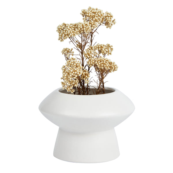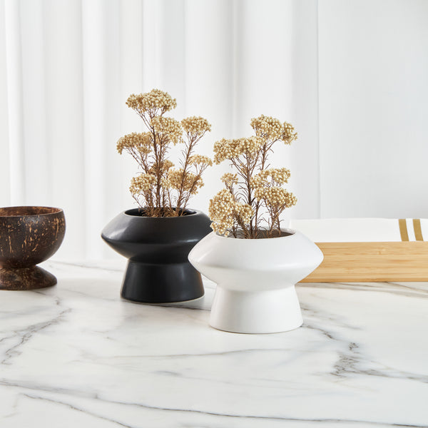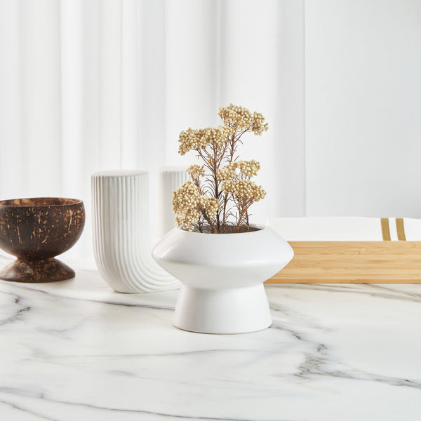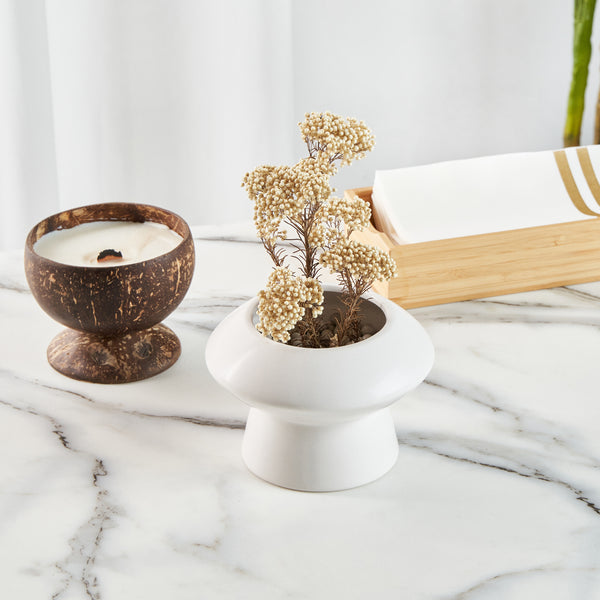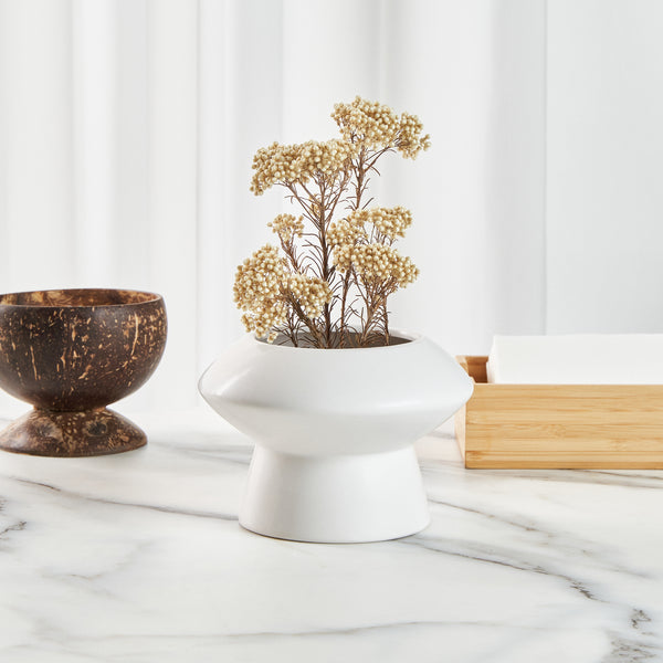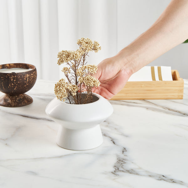 Enhance your dining ambiance with sophisticated decor. The Table Art Mushroom-Inspired Ceramic Flower Vase boasts an eye-catching design that creates an attractive focal point in any setting, making it perfect for showcasing floral arrangements in upscale restaurants and fine dining establishments. Its elegant white finish adds a touch of style, seamlessly blending with a variety of decor styles, while the modern minimalist vase design complements contemporary aesthetics. Crafted from premium ceramic, this vase ensures long-lasting durability and sturdiness, ideal for frequent use in busy foodservice environments. With compact dimensions of 5.8 inches by 5.8 inches, it serves as a chic centerpiece without overwhelming table space, allowing for comfortable dining arrangements. Whether adorning banquet halls or hotel dining areas, this white ceramic vase invites a sophisticated and inviting atmosphere. Each order includes 1 Table Art Mushroom-Inspired Ceramic Flower Vase.
