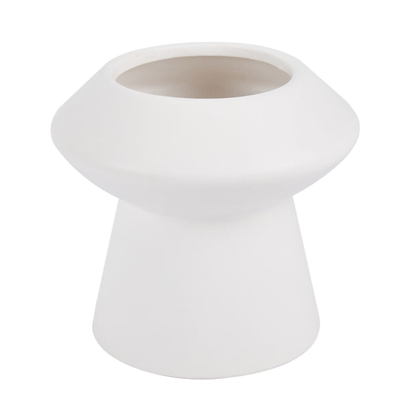Stylishly enhance your living room with our Table Art White Ceramic Mushroom Vase. This ceramic vase features a mushroom-inspired design and complements any space with minimalist elegance. Boasting a classic white color, this flower vase creates a clean and timeless aesthetic, perfect for any decor. This decorative vase has a raised base and minimizes the risk of tipping over, keeping your floral arrangements intact. Crafted from premium ceramic, this centerpiece vase boasts durability and sturdiness for long-lasting use. This table vase complements a wide variety of settings, from chic office spaces to cozy living rooms. The versatile design of this white vase allows you to use it as a standalone centerpiece or vessel to hold your vibrant floral arrangements. This white ceramic vase can be hand washed with soap and water, facilitating easy upkeep and maintenance. Measuring 6.3 inches in diameter by 5.9 inches in height, this white decorative vase is perfect for holding different types of flowers. Sold in a 1 count box.