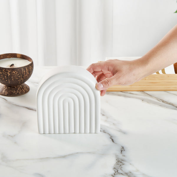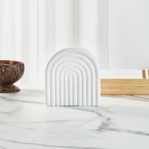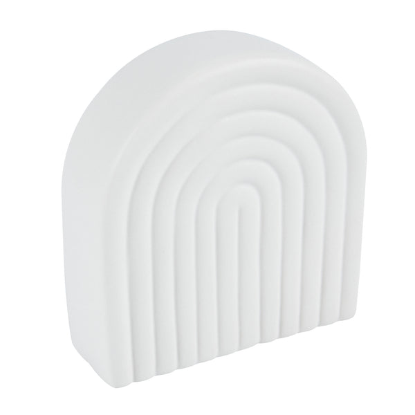 Enhance your decor with our Table Art White Ceramic Rainbow Vase. This ceramic vase showcases an exquisite design, capturing attention with its intricate details and timeless elegance. Boasting a classic white color, this flower vase radiates timeless charm, effortlessly enhancing the beauty of any floral arrangement or decorative display. Made from premium ceramic, this decorative vase is durable and sturdy, ideal for maintaining its pristine appearance. With a stable base, this centerpiece vase reduces the risk of tipping over, ensuring your display stays intact. This table vase complements a range of settings, from dining rooms to chic offices, enhancing their ambiance effortlessly. With a versatile design, this white vase functions as a standalone centerpiece or to showcase floral and dried arrangements with elegance. This white ceramic vase can be hand washed with soap and water, simplifying maintenance and keeping your space looking fresh. Measuring 6.1 inches in length by 2.1 inches in width by 6.3 inches in height, this white flower vase fits perfectly in any space while making a bold statement. Sold in a 1 count box.