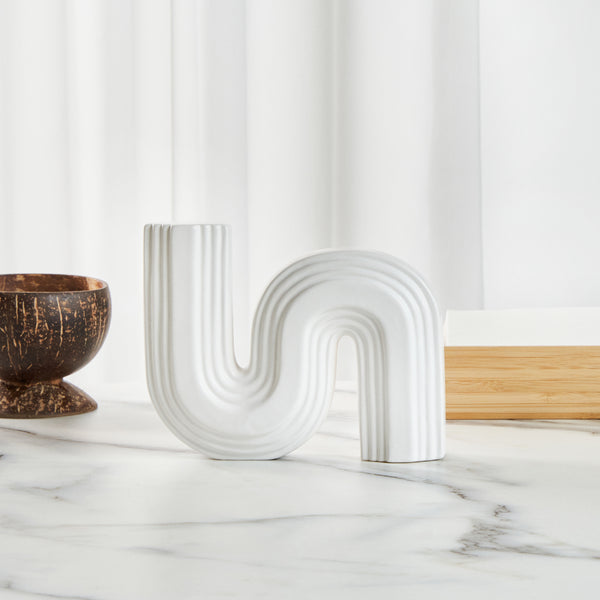 WHITE CERAMIC S-SHAPED VASE
