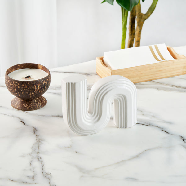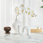 Elevate your decor with our Table Art White Ceramic S-Shaped Vase. This ceramic vase boasts an eye-catching S-shaped design that adds a distinct touch of modernity to any space, making it a stunning focal point in any room. The white finish of this decorative vase beautifully enhances its minimalist charm, offering a stylish accent for any interior. Crafted from premium ceramic, this white vase is durable and sturdy, ideal for long-lasting use. The sturdy base of this ceramic vase minimizes the risk of tipping over and ensures your floral arrangements are displayed beautifully. This flower vase complements a wide variety of settings and enhances everything from office spaces to living rooms with its timeless appeal. The versatile design of this table vase is perfect for showcasing floral arrangements or as a standalone sculptural piece. This centerpiece vase can be cleaned with soap and water, ensuring easy upkeep and maintenance. Measuring 7.2 inches in length by 1.9 inches in width by 5.9 inches in height, this white decorative vase fits into various settings. Sold in a 1 count box.