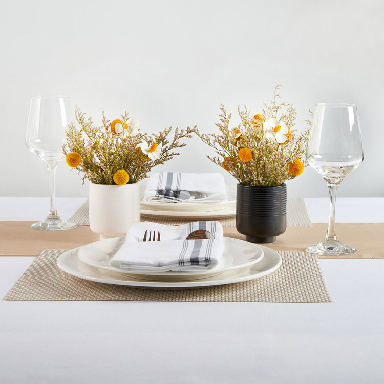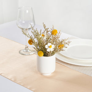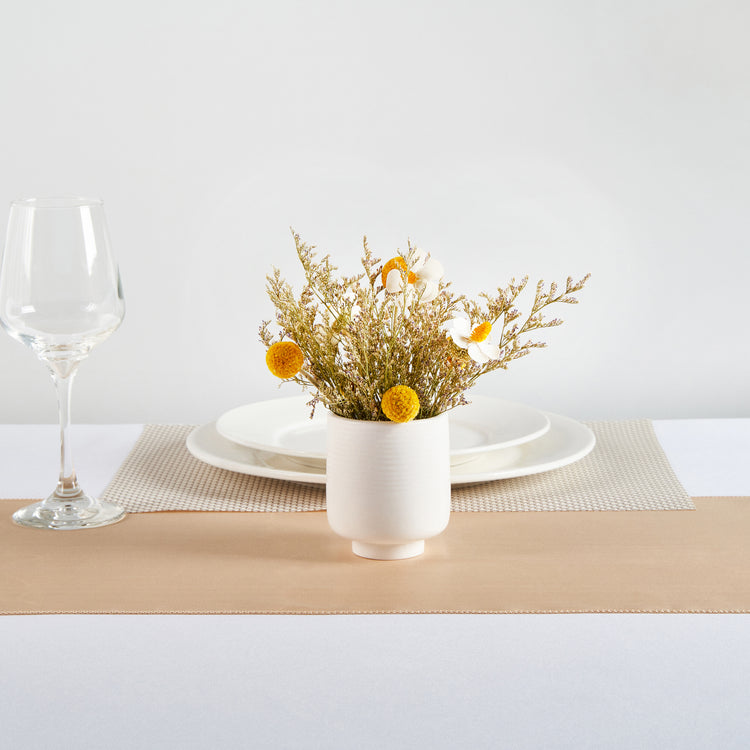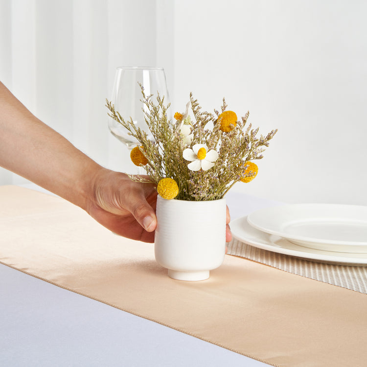 Display your favorite blooms with our Table Art White Ceramic Tea Cup Vase. This ceramic vase features a tea cup-inspired design and complements the visual appeal of any setting. Boasting a classic white color, this flower vase fits into various themes and decorative styles, adding a timeless elegance to any setting. This decorative vase is manufactured from premium ceramic for long-lasting durability and sturdiness. The base of this centerpiece vase provides added stability and reduces the risk of tipping over, keeping your floral arrangements intact. This table vase complements and enhances the ambiance of various settings, including offices, dining rooms, and more. The versatile design of this white vase can be used as a standalone centerpiece or as part of a larger decorative arrangement. This white ceramic vase can be hand washed with soap and water, making upkeep a breeze. Measuring 3.1 inches in diameter by 3.6 inches in height, this white flower vase is compact yet impactful. Sold in a 1 count box.