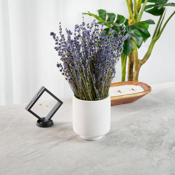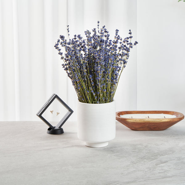 Enhance the ambiance of your space with our Table Art White Ceramic Tea Cup Vase. This flower vase has a tea cup-inspired design, serving as a delightful visual focal point for any floral arrangement or decorative display. With a classic white finish, this ceramic vase exudes a minimalist charm, perfect for enhancing the aesthetic of any space with its understated elegance. Made from ceramic, this decorative vase is durable and sturdy, ideal for long-lasting use. The sturdy base of this centerpiece vase minimizes the risk of tipping over, keeping your floral arrangements intact. This table vase complements various settings, from offices to living rooms, adding a touch of sophistication wherever it's placed. The versatile design of this white vase makes it ideal as a standalone centerpiece or a stylish vessel for floral arrangements to complement any decor. To maintain its pristine appearance, this white ceramic vase can be hand washed with soap and water for easy upkeep. Measuring 4.5 inches in diameter by 4.9 inches in height, this white flower vase is compact yet makes a bold statement. Sold in a 1 count box.